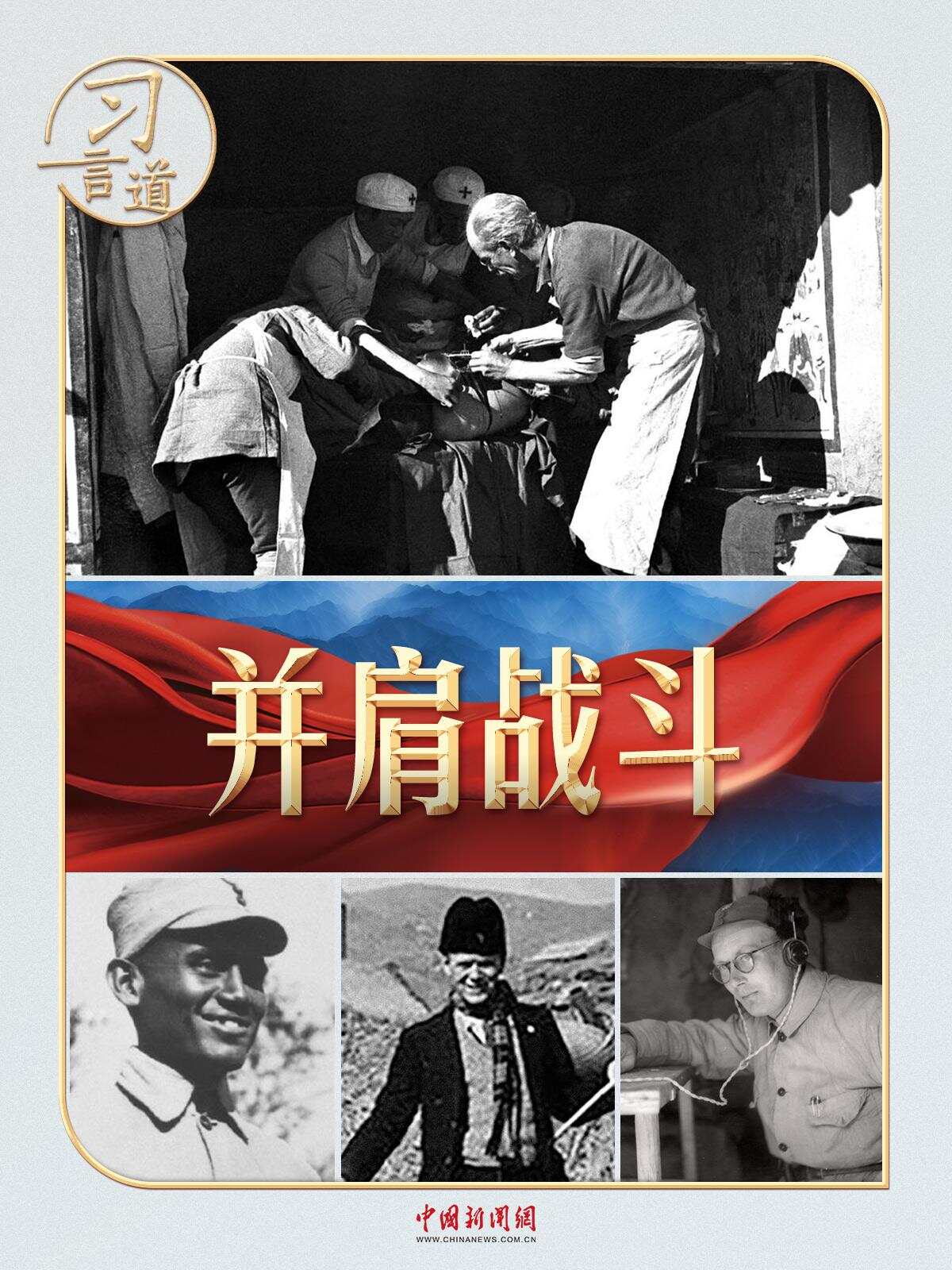 印度医生柯棣华、法国医生贝熙叶、德国人约翰·拉贝、丹麦人辛德贝格、英国人林迈可、国际主义战士汉斯·希伯、苏联飞行大队长库里申科、美国“飞虎队”......他们的事迹,习近平总书记曾多次动情讲述。总书记还在国内外重要场合为曾帮助和支持中国抗战的国际友人颁奖,向他们致敬。