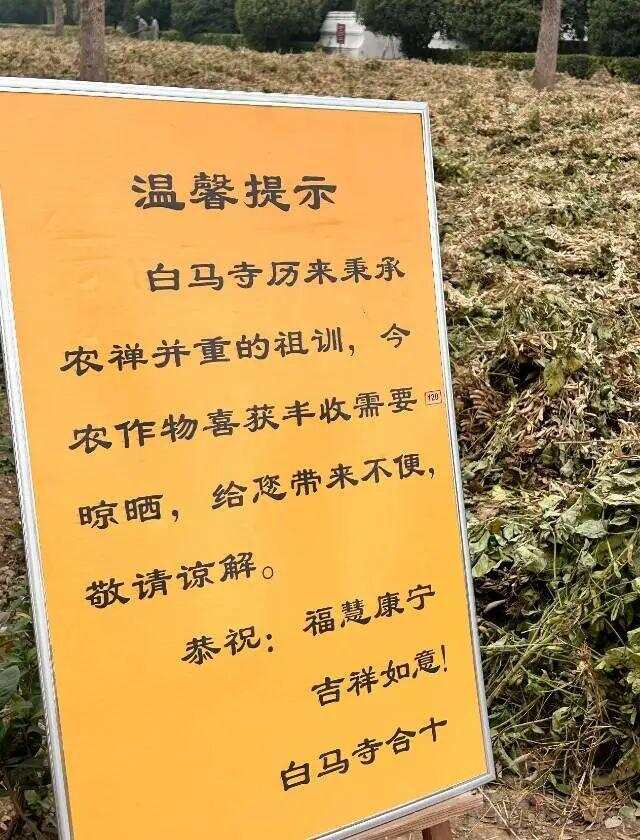 据了解,白马寺作为中国佛教的“祖庭”,一直以来都遵循农禅并重的祖训,每年收获的季节,许多游客都能在寺院空地上看到大片晾晒的粮食,包括黄豆、玉米等。