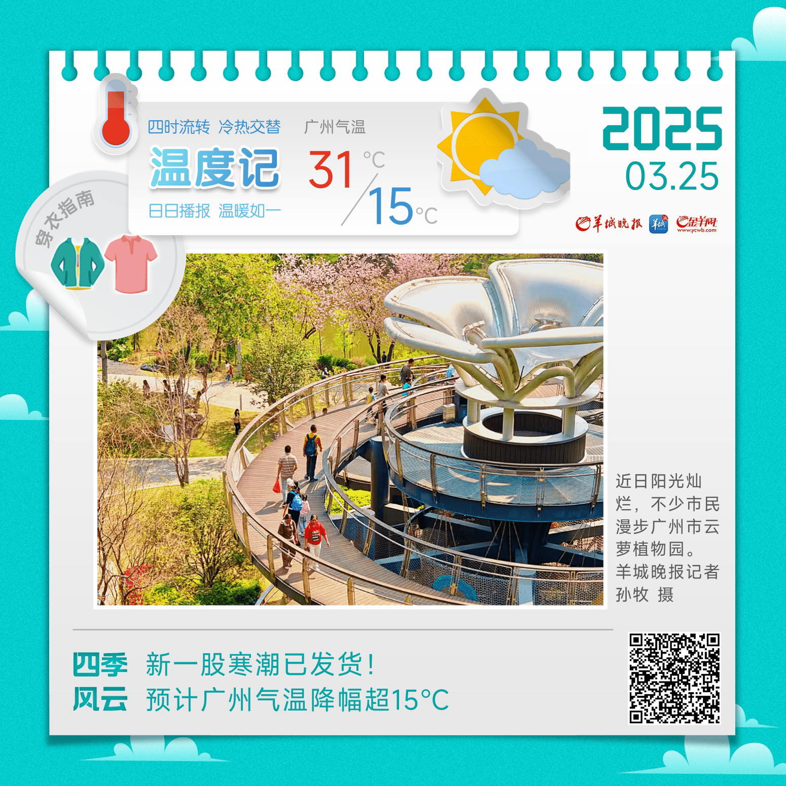 广州方面,寒潮抵达前,气温继续肆无忌惮地爬升——30℃+恍若夏季,不过昼夜温差超过10℃,还请街坊们注意洋葱穿衣法。周末在寒潮影响下,最低温度或跌到11℃,羽绒服先Hold住!