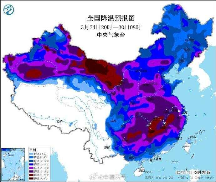 需要注意的是,这股寒潮带来的天气变化非常快,像河南、湖北、安徽、江苏等地的不少地方27日-28日的两天降温幅度可达20℃,部分地区还会出现激烈的雷雨大风冰雹,甚至不排除出现雨转雪的可能。