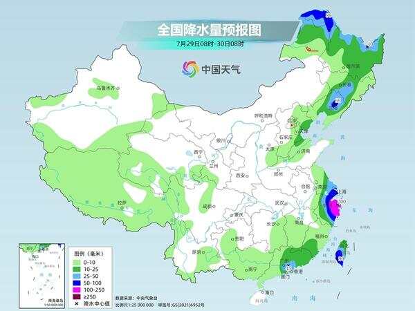 明天,内蒙古东北部、黑龙江北部、吉林中部、辽宁北部、江苏南部、上海、浙江中东部、台湾岛中南部、广东南部等地的部分地区有大到暴雨,其中,浙江中东部等地的部分地区有大暴雨。