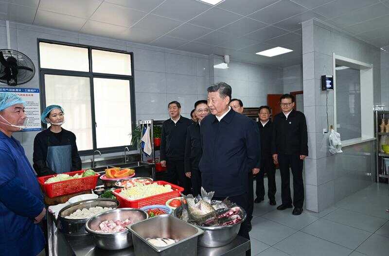 2024年11月5日,习近平总书记在湖北咸宁市嘉鱼县潘家湾镇四邑村养老服务驿站食堂考察。