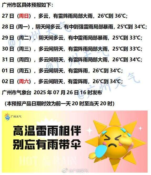 @广东天气 预计,27日起,广东雷雨天气趋于增强。雷雨时局地有7~9级局地10级短时大风。天气依旧热热热~