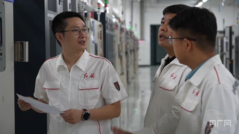赵洪辉与同事们交流电池安全结构攻关问题(央广网记者 舒震 摄)