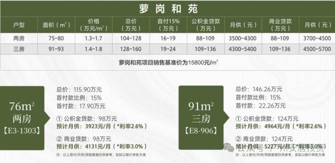 本次推售的房型涵盖建面约76-93㎡的实用2-3房,两房配售价格约104万-128万元,三房配售价格约128万-160万元,首付/月供参考价分别是(首付15%):两房公积金贷款月供约3500-4300元,商业贷款约3700-4500元。三房公积金贷款月供约4300-5400元,商业贷款约4500-5700元。