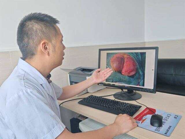 钱犇在介绍病情。(湖北日报全媒记者 刘孝军 摄)