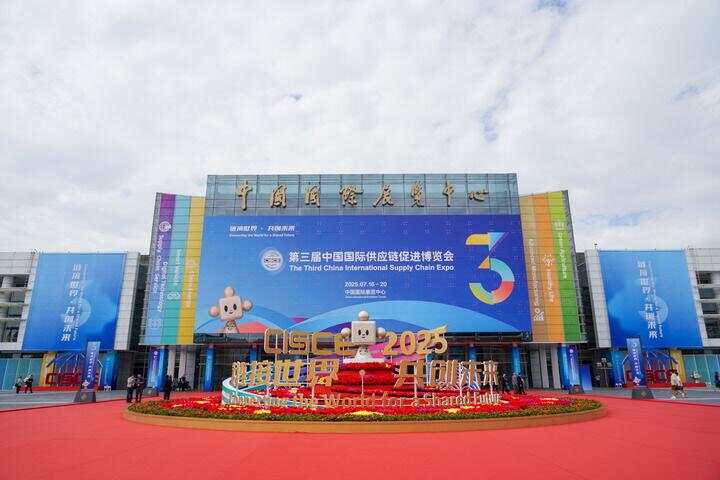 这是2025年7月16日拍摄的第三届中国国际供应链促进博览会会场外景。新华社记者 王静颐 摄