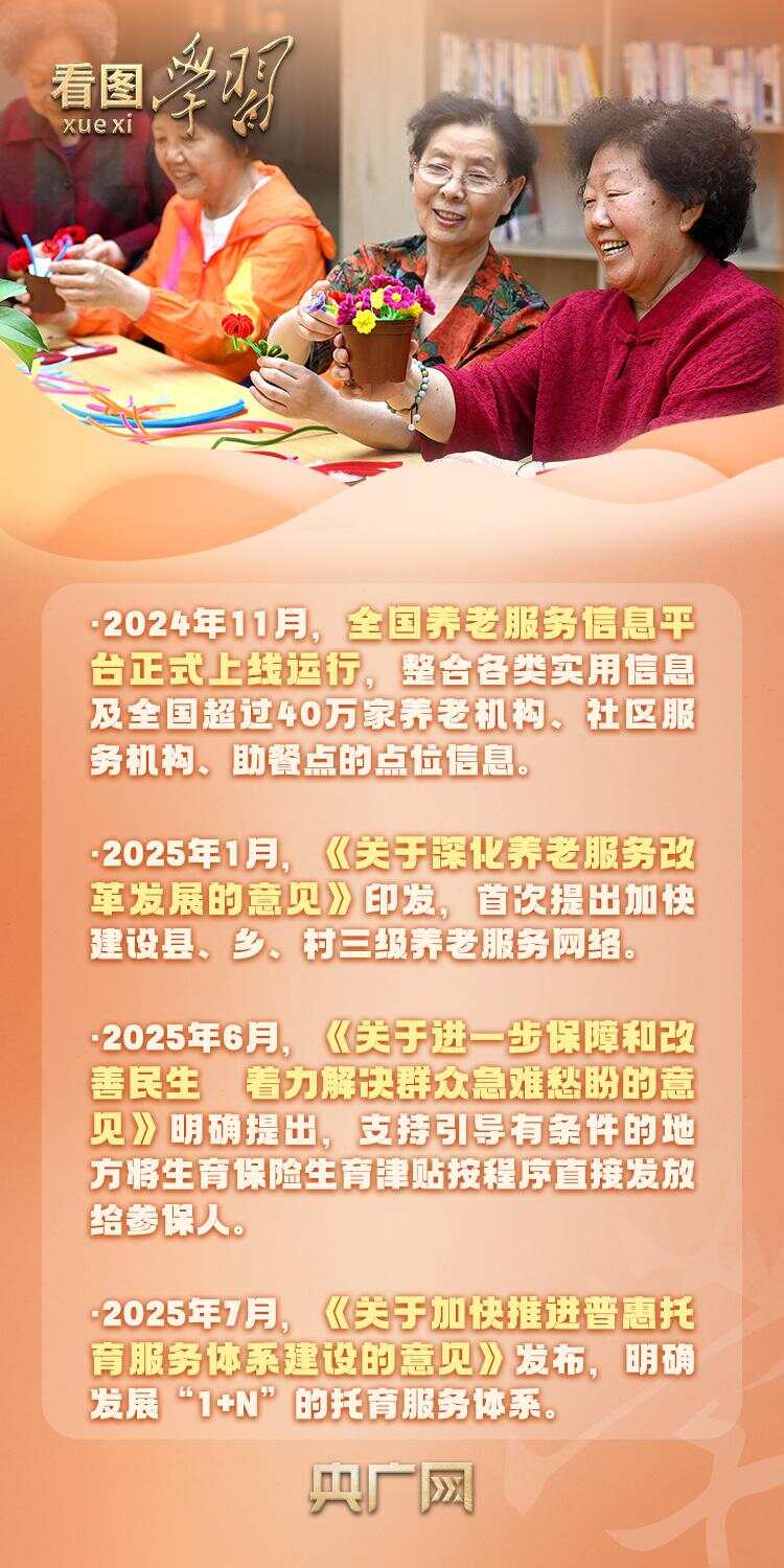 党的二十届三中全会对积极应对人口老龄化、加强普惠育幼服务体系建设作出重要部署。一年来,我国在“一老一小”服务和普惠托育体系建设方面进入发展快车道。让我们重温总书记重要论述,一起共同关爱老人家、小朋友!