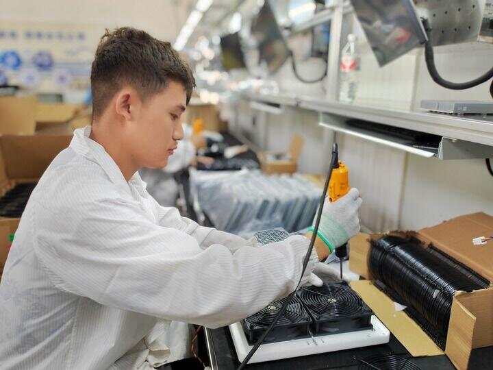 闽宁镇闽宁产业园的星汉智能科技(宁夏)有限公司的生产车间里,一个个零部件经过加工和组装,成为一台台超算服务器。不久后,这些设备将出口到共建“一带一路”国家。