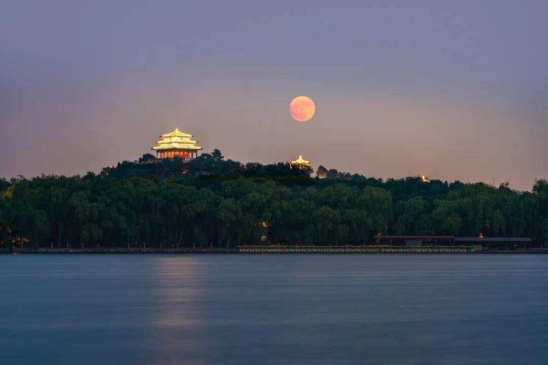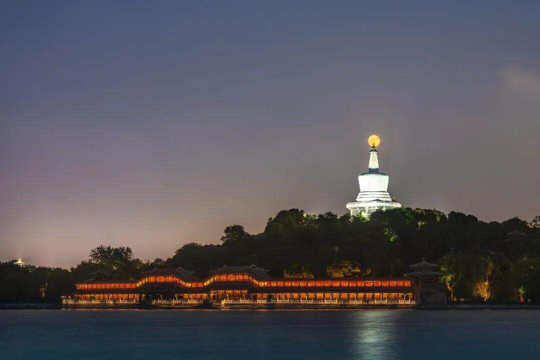 △2024年6月21日,“最低满月”亮相北京北海公园上空。(资料图)