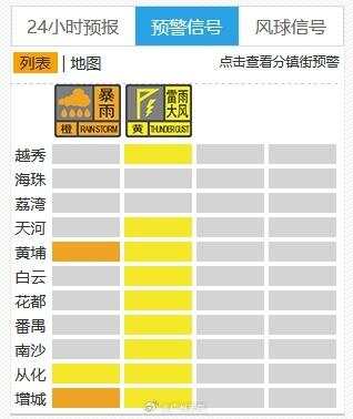 天雨路滑,开车的小伙伴记得降速、控距、亮尾。路遇不明深度的积水不要冒险涉水。早点出门,预留好绕路的时间。目前广州各区预警信号生效情况如图,各位家长和学生可根据实际情况选择延迟上学↓