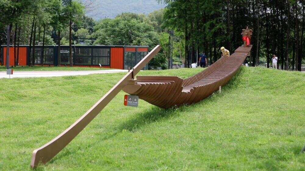 对于龙舟文化爱好者来说,福州龙舟文化主题展示馆是公园内不能错过的打卡点。展馆内的龙舟实物、老照片、古诗词等展品,将多彩灿烂的福州龙舟文化展示给游客。