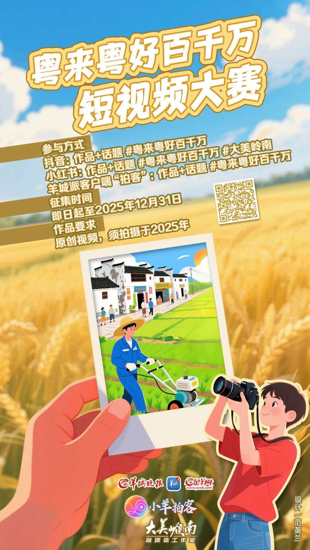 这一次,羊城晚报小羊拍客和大美岭南两个融媒体工作室特别联动,邀你举起镜头,定格“百千万工程”的澎湃瞬间,用短视频讲述广东乡村的奋斗故事,让世界看见乡村振兴的“广东答案”!