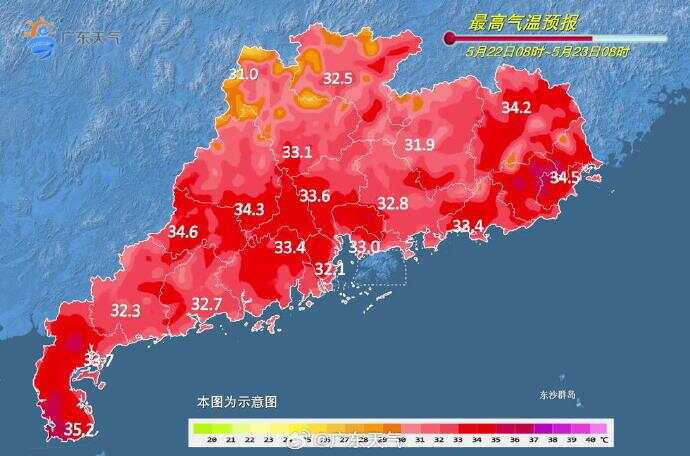 ◆预计22日,清远、韶关多云,有(雷)阵雨局部大雨或暴雨,广东其余市县多云,有分散(雷)阵雨。最高气温:清远、韶关29~31℃,其余市县31~35℃。