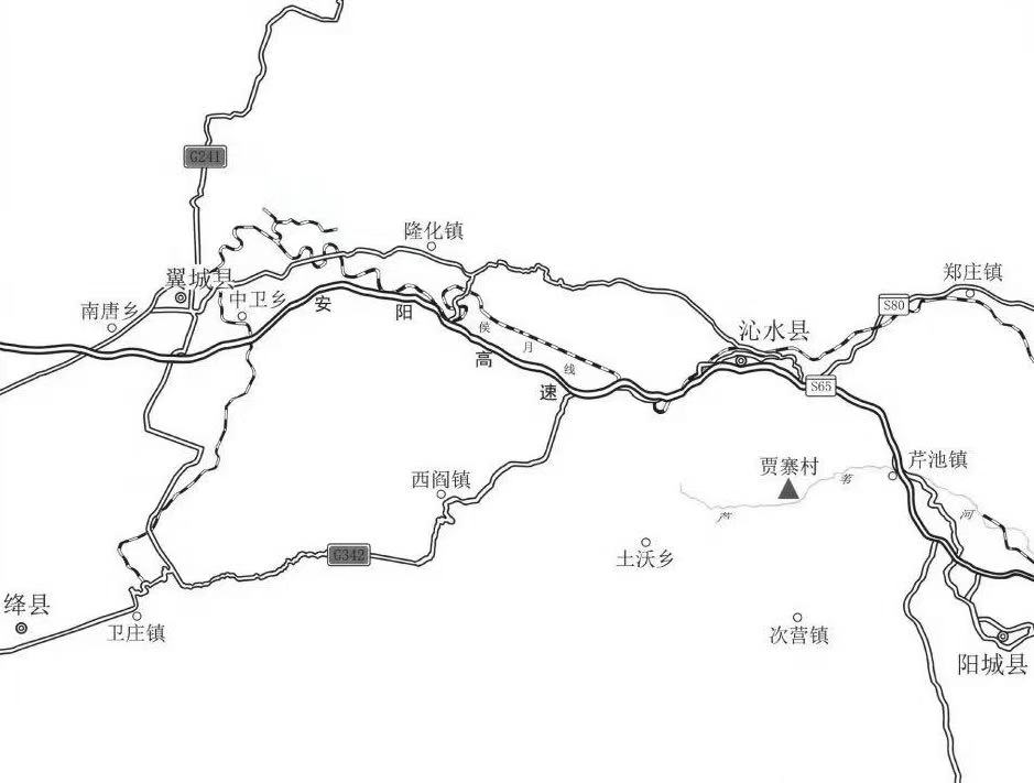 贾寨遗址位于山西省晋城市阳城县芹池镇贾寨村,遗址南临芦苇河,地形北高南低。芦苇河支流西河穿村而过将整个遗址分为东西两部分,实为同一遗址。贾寨村西遗址分布范围东西约300、南北约100米,面积不小于30000平方米,地面可见少量陶片,遗址南部临河断崖上发现有文化层、灰坑和壕沟等遗迹。考古队在当地民众提供的线索指引下,于引水灌渠北部清理出一座庙底沟二期文化时期大型房址。