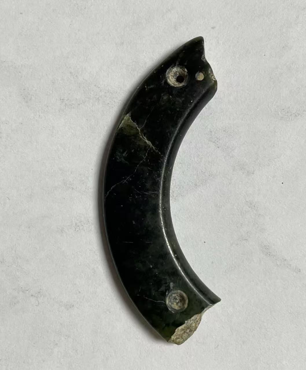 同时在填土内出土一件玉环,墨绿色,截面为三角形。本次调查还发现了斝足、小口高领罐、夹砂深腹罐口沿、陶豆圈足等庙二早期陶器。