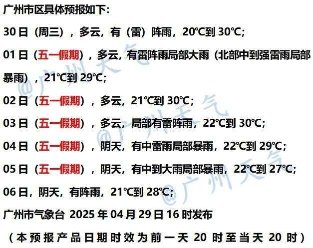广州的小伙伴们要抓紧时间晾晒咯,五一假期阿雨或常见!