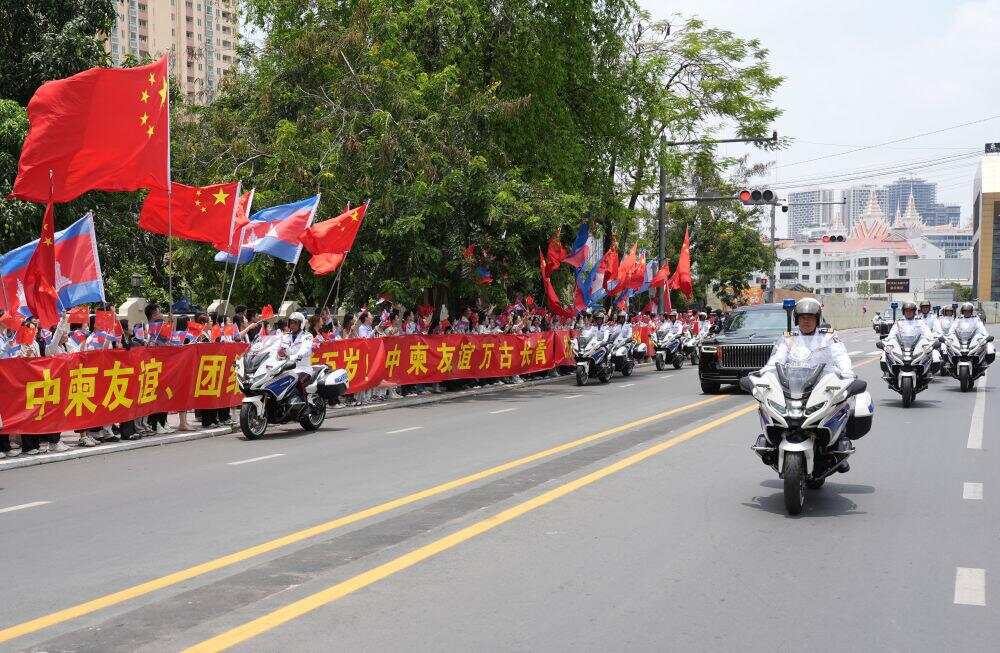 午时的阳光恰似人民的热情如火,蜿蜒的队伍正如两国情谊绵长。此时的金边,化作一片热烈欢庆的海洋。