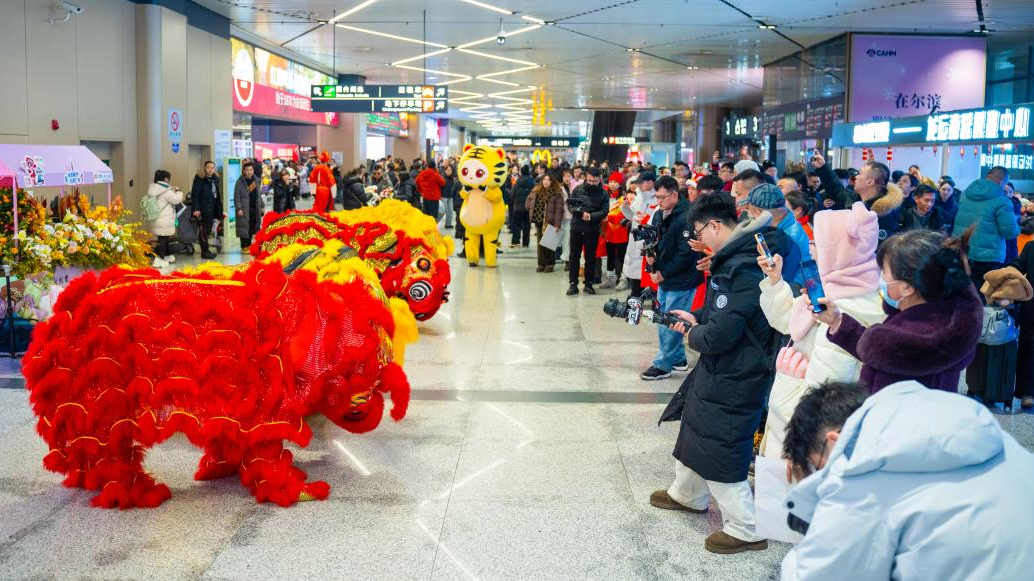 广东醒狮在哈尔滨太平国际机场“快闪”大受欢迎 | 粤享暖冬 乐游广东