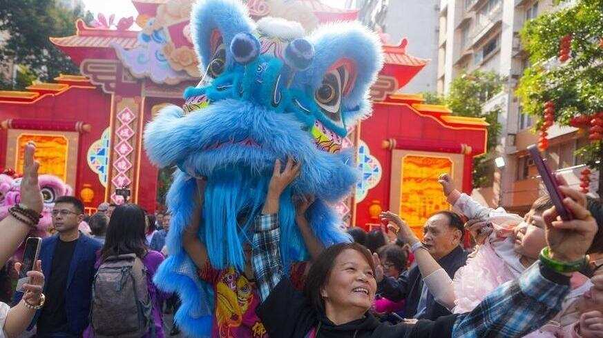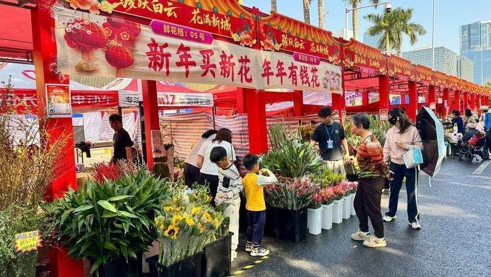 舞狮和“大湾鸡”陪您“行花街”!广州海珠滨江花市亮灯迎客